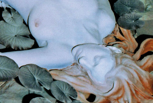 Une sérénité émane de cette réalisation... Le titre est important : Pour une résurrection d'Ophélie. Dans l'imaginaire Ophélie est toujours représentée au clair de Lune, avec des fleurs, sa chevelure et sa robe étalées autour d'elle, flottant sur l'onde, paisible, semblant plus endormie que morte. En effet dans la version envisagée par l'artiste, Ophélie est en attente d'une résurrection.
