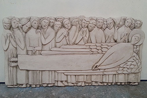 En 1945, Geneviève intégre les Beaux Arts et travaille avec Laplace, Chancrin, Peloux, Lapandery... Ses nouveaux amis sont Robert Duran, Suzette Mézie, François Barbier dit «friquet», Louise Hornung, Truphémus, Fusaro, Avoscan et bien d’autres. Elle termine ses études en travaillant chez un fabricant de statues religieuses où elle apprend le modelage et le moulage. Elle est diplômée en juin 1951 et obtient le Prix Chenavard. Ci-dessus « FRESQUE AUX 12 », bas relief.